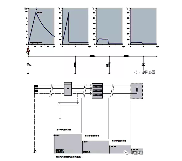 因此,僅靠避雷針防雷還不夠,必須設(shè)置多級防雷系統(tǒng),各級分類保護(hù);多種元件來防雷電、防過電壓。通常使用三類基本保護(hù)元件: